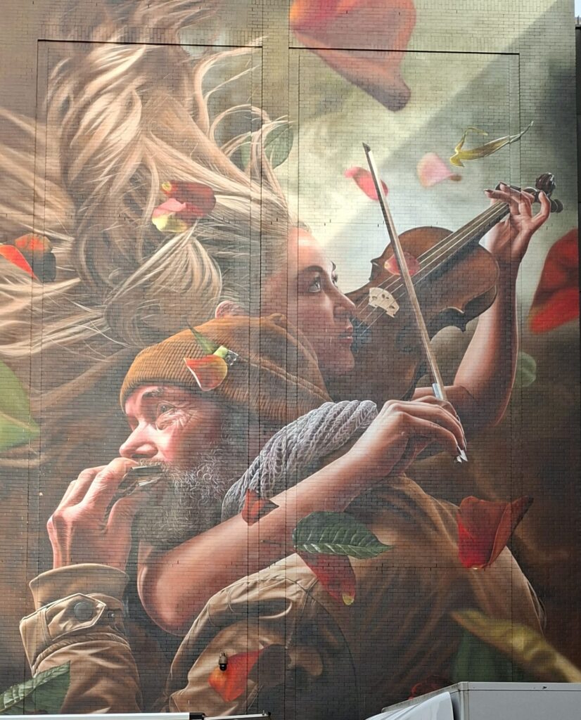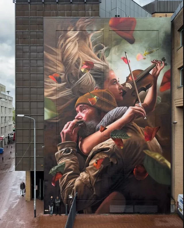Op initiatief van de Gemeente Eindhoven en in samenwerking met het Muziekgebouw en de Heuvel Galery heeft Studio Giftig weer een geweldig mooie muurschildering gemaakt op de zijkant van het Muziekgebouw. De muurschildering verbeeldt het samensmelten van 2 werelden tussen een straatmuzikant en een violiste. Het is een symbool van de kracht van muziek om barrières te doorbreken en gemeenschappen te verenigen.